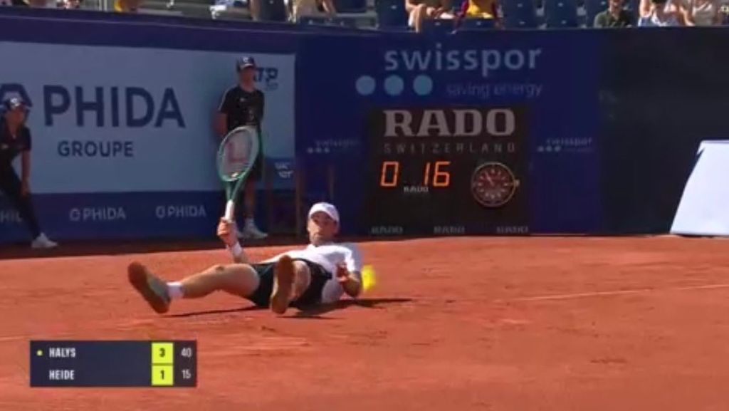 El momento cumbre del encuentro ocurrió en el quinto juego del primer set. Durante un intercambio de golpes, Halys resbaló y cayó sobre la arcilla, pero se las ingenió para golpear la pelota desde el suelo. A pesar de su posición comprometida, el tiro de Halys cruzó la cancha y dejó a Heide sin opciones, quien terminó enviando el balón fuera.