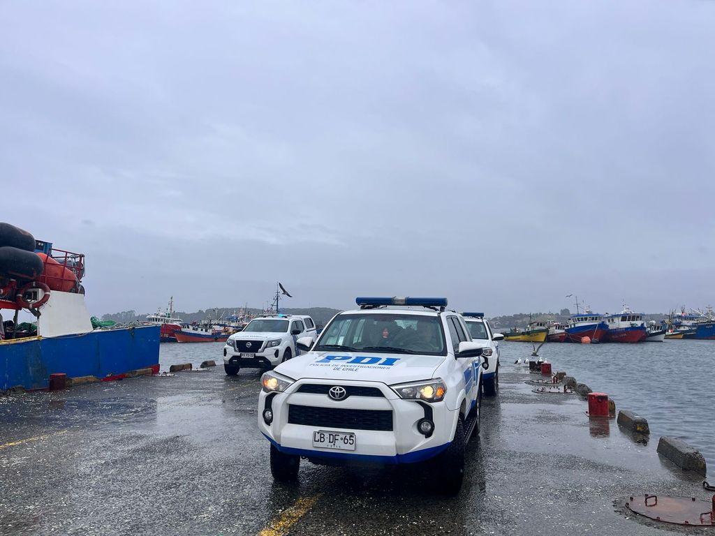 Un equipo de la PDI realizó los peritajes en el lugar del asesinato correspondiente al muelle artesanal.