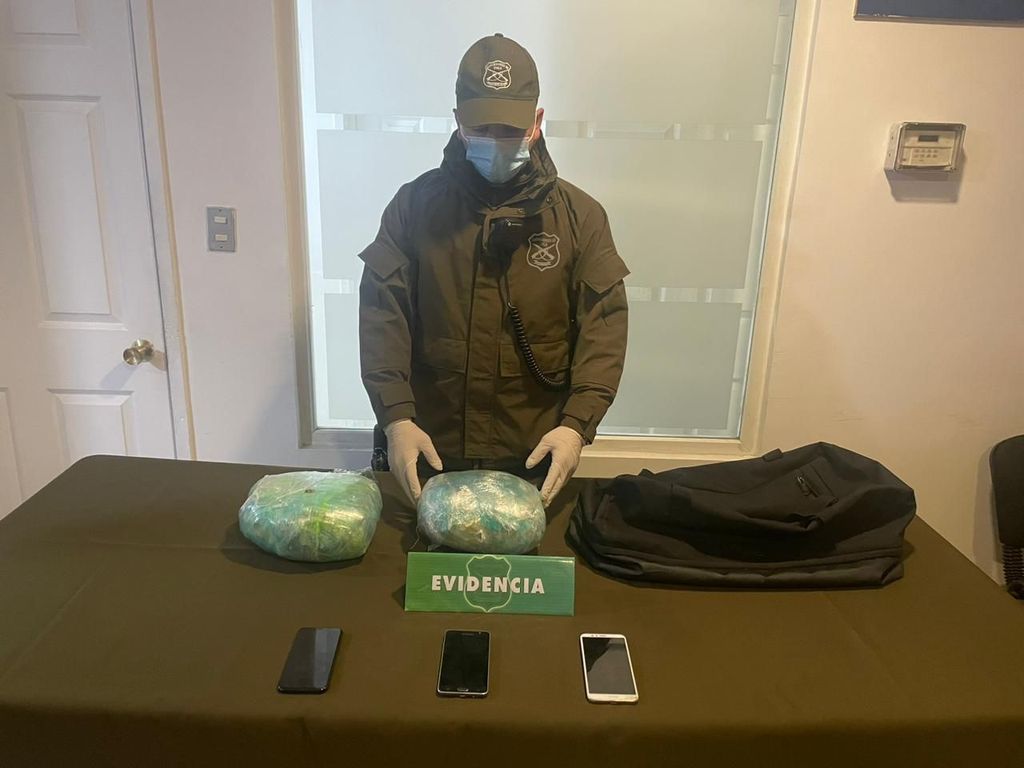 En el lugar se incautaron dos kilos de la droga prensada avaluada en unos 10 millones de pesos. Uno de los imputados mantenía dos órdenes de detención vigentes pasando junto a su acompañante al control de detención en el Juzgado de Garantía.