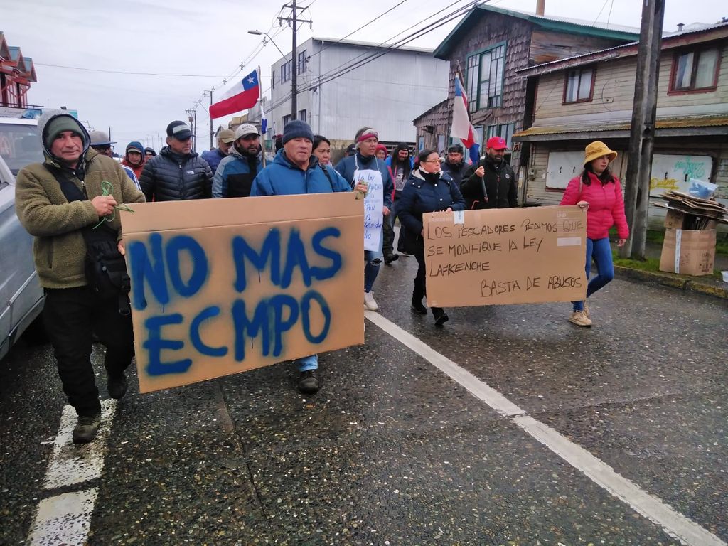 Marchas simultáneas en distintos puntos de la provincia de Chiloé realizó la gente de mar en demanda por modificar la Ley Lafkenche que otorga los Espacios Costeros Marinos de Pueblos Originarios, ECMPO.